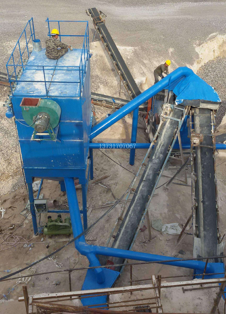 我公司為石料廠、礦山、選礦廠配套生產的砂石破碎篩分生產線粉塵收集布袋除塵器,多項先進技術通過OO,不僅提高了除塵器粉塵的收集能力和過濾精度,而且該除塵器采用了分箱大口徑脈沖閥,反吹式清灰,換袋時,可打開頂部蓋子直接抽出濾袋,維護簡單、方便。避免了噴吹式袋式除塵器換袋時需要拆除噴吹管、文丘里管等繁瑣過程。