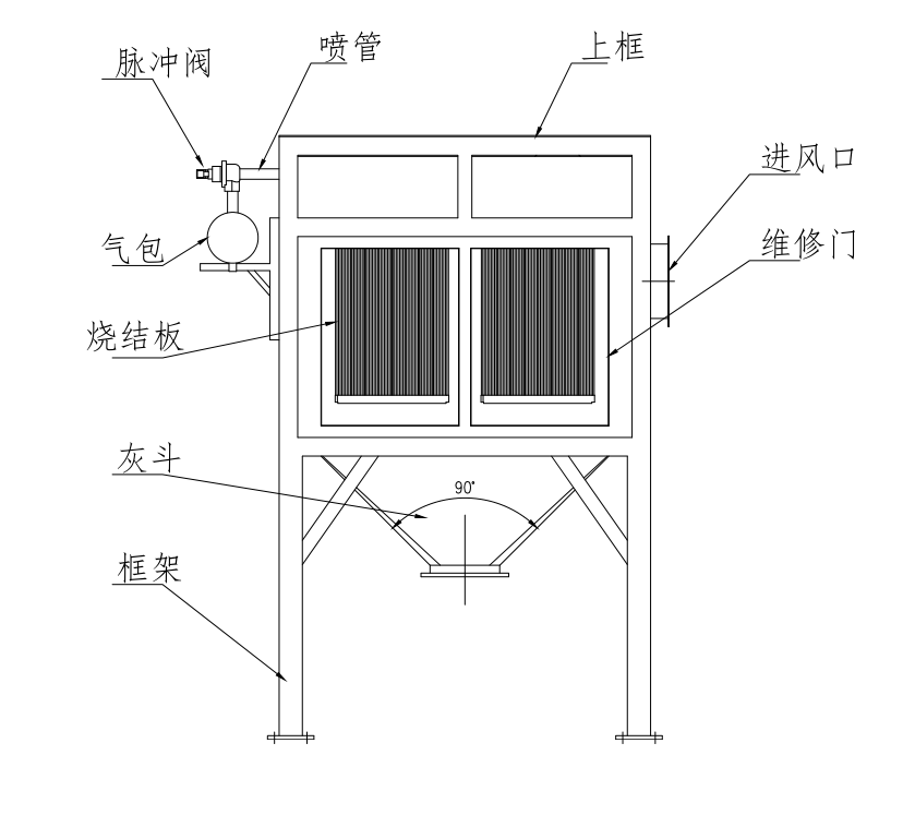 ●安裝維護方便。安裝更換燒結板只需打開除塵器檢修門,擰緊固定燒結板的兩個螺栓即可完成一塊濾板的裝配。在日常生產中,幾乎無須維修保養(yǎng)。