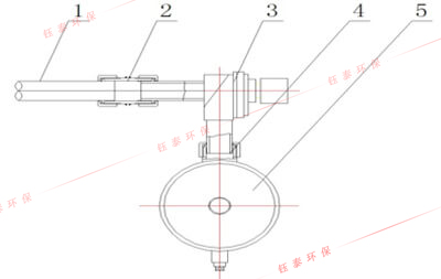 1、噴吹管 | 2、橡膠連接管 | 3、電磁脈沖閥 | 4、氣包連接管 | 5、氣包 |
