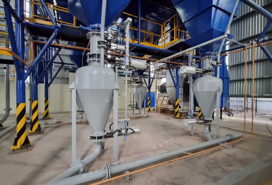 當布袋上的粉塵逐漸變厚,阻力增大時,除塵器脈沖閥將向布袋內吹入壓縮空氣,布袋會膨脹并劇烈振動,布袋上的塵粒落入灰斗中。落入灰斗的灰渣由螺旋輸送機收集至儲灰筒。